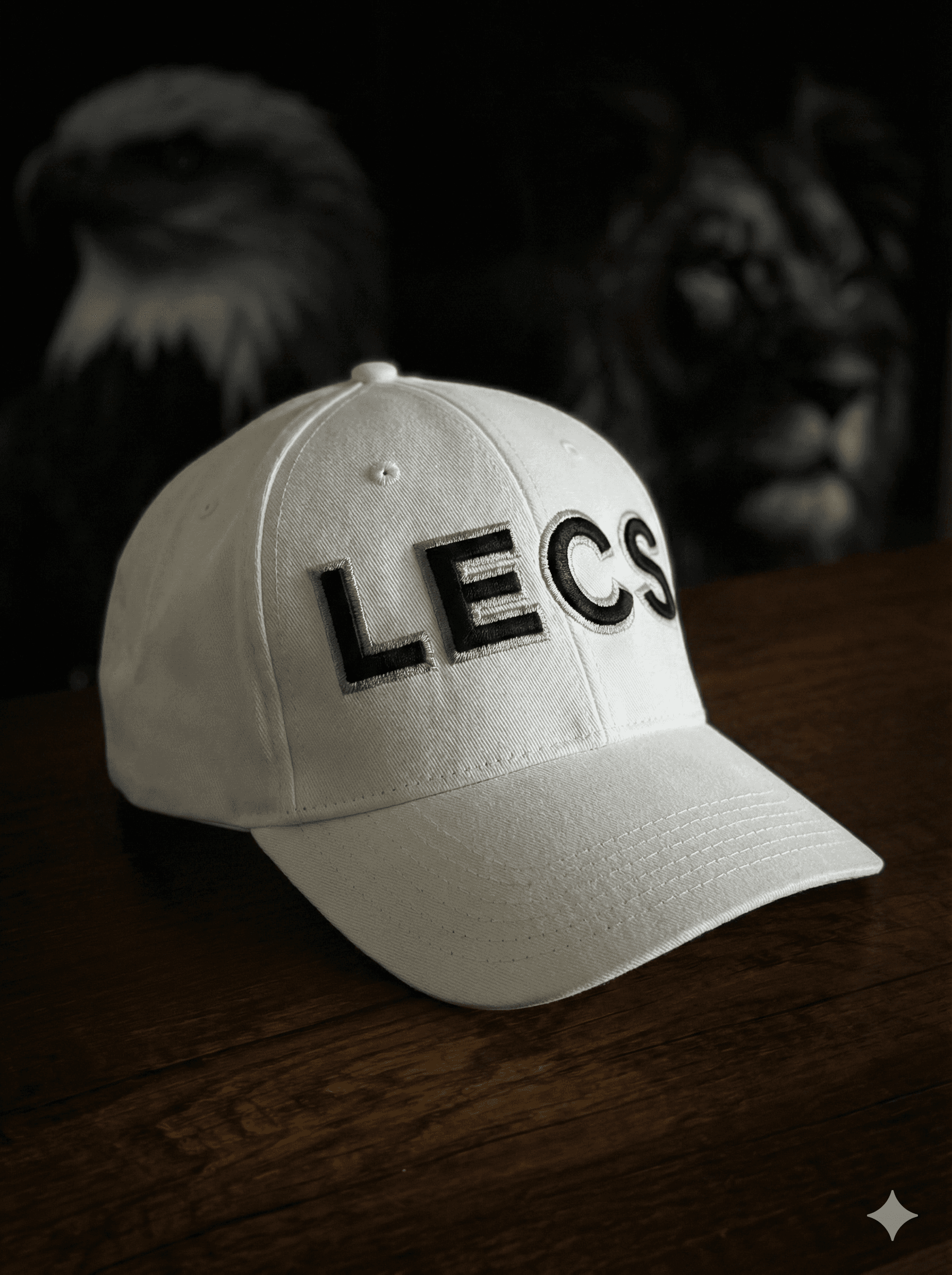 La definición gráfica de nuestra marca. Este modelo en blanco puro presenta las siglas LECS en un bordado 3D con relieve pronunciado que rompe la uniformidad. Es una declaración de principios: seguridad, limpieza y carácter. Perfecta para quienes saben que el estilo está en los detalles fuertes.